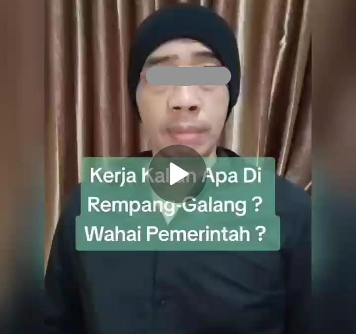 Video tersebut terungkap pada Jum’at (22/09/2023) sekira pukul 14.00 siang hari melalui akun WhatsApp HRA (inisial). Pria yang belum diketahui namanya itu melakukan kritikan keras terhadap pemerintah daerah dan pusat dengan bertulisan “Kerja Kalian Apa di Rempang Galang ? Wahai Pemerintah ?”